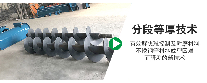 2、 “分段等厚螺旋葉片”為單螺距形態,外沿厚度與內孔厚度幾乎一致。成型后外徑,內徑,螺距即可準確地達到客戶所需尺寸。