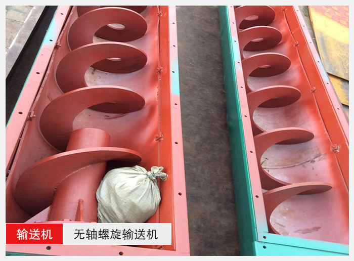 無軸絞龍螺旋輸送機就是其,螺旋軸上只有螺旋葉片沒有螺旋軸。所以叫做無軸絞龍螺旋輸送機。