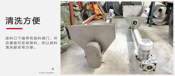 進料口下端帶有放料閥門,并且螺旋可反轉(zhuǎn)排料,所以排料、清洗都非常方便。