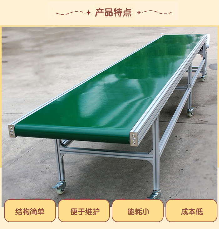 用來輸送松散物料或成件物品,根據(jù)輸送工藝要求,可以單臺輸送,也可多臺組成或與其他輸送設(shè)備組成水平或傾斜的輸送系統(tǒng),以滿足不同布置型式的作業(yè)線需要。