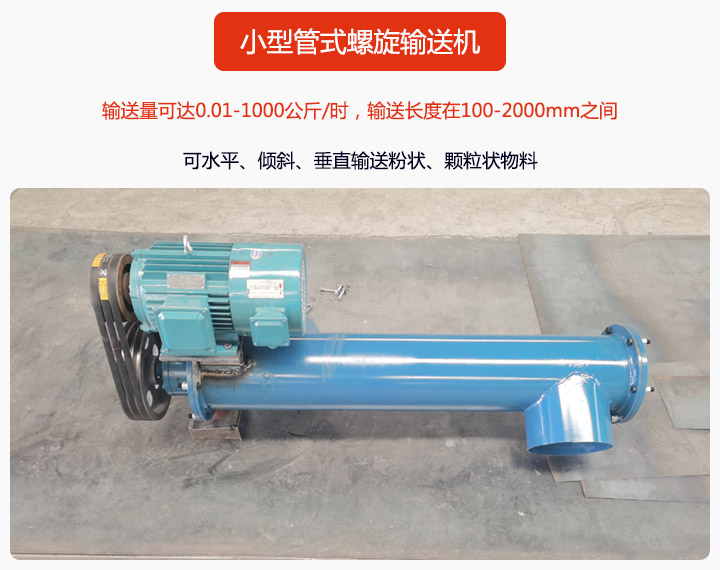 小型管式螺旋輸送機(jī)適用于建材、化工、電力、冶金、煤炭、糧食等行業(yè),適用于水平或傾斜輸送粉狀、粒狀和小塊狀物料,如煤、灰、渣、水泥、糧食等。