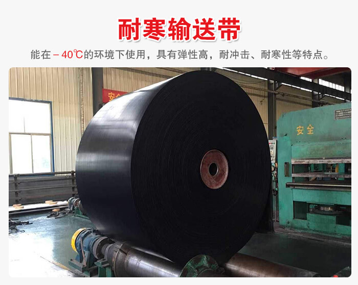 耐寒輸送帶選用的是棉帆布、尼龍帆布或聚脂帆布作帶芯,覆蓋膠采用橡膠與順丁橡膠的并用膠,能在﹣40℃的環(huán)境下使用,具有彈性高,耐沖擊、耐寒性等特點。