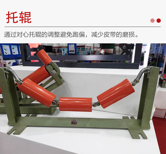作用:①用戶可以通過對心托輥的調(diào)整,來決定橫向位置,避免物料在輸送過程中跑偏,②緩沖托輥裝在受料處,以減小物料對皮帶的沖擊,減少皮帶的磨損。