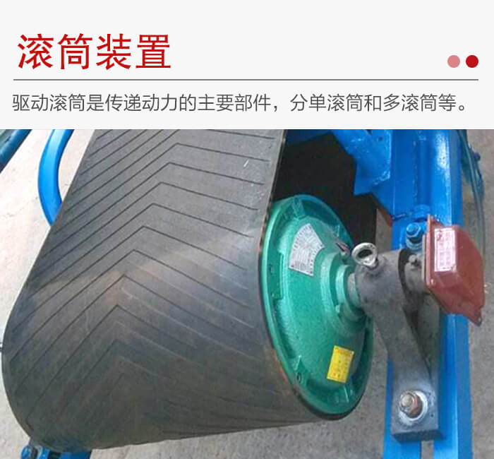 皮帶輸送機滾筒裝置分為驅(qū)動滾筒和改向滾筒。驅(qū)動滾筒是傳遞動力的主要部件,分單滾筒(膠帶對滾筒的包角為210°至230°)、雙滾筒(包角達350°)和多滾筒(用于大功率)等。